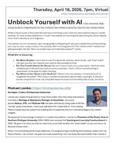 A No-nonsense, High-energy Guide to Integrating AI into Your Creative Flow without Losing Your Soul (Or Your Unique Voice) Zoom link to this event will...