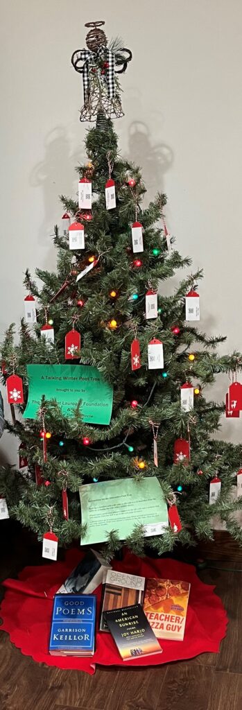 U.P. Poet Laureate M. Bartley Seigel and previous laureates: Martin Achatz and Andrea Scarpino joined the Marquette Poets Circle by sharing poems on a “Talking Winter Poet Tree” at Peter White Library’s Winter Wonderland. Visitors to the tree could scan red tags and hear the poets read their poems.