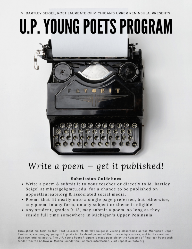 For media inquiries, or for U.P. educators interested in having M. Bartley Seigel visit their classrooms, please email mbseigel@mtu.edu, subject “U.P. Young Poets Program.”